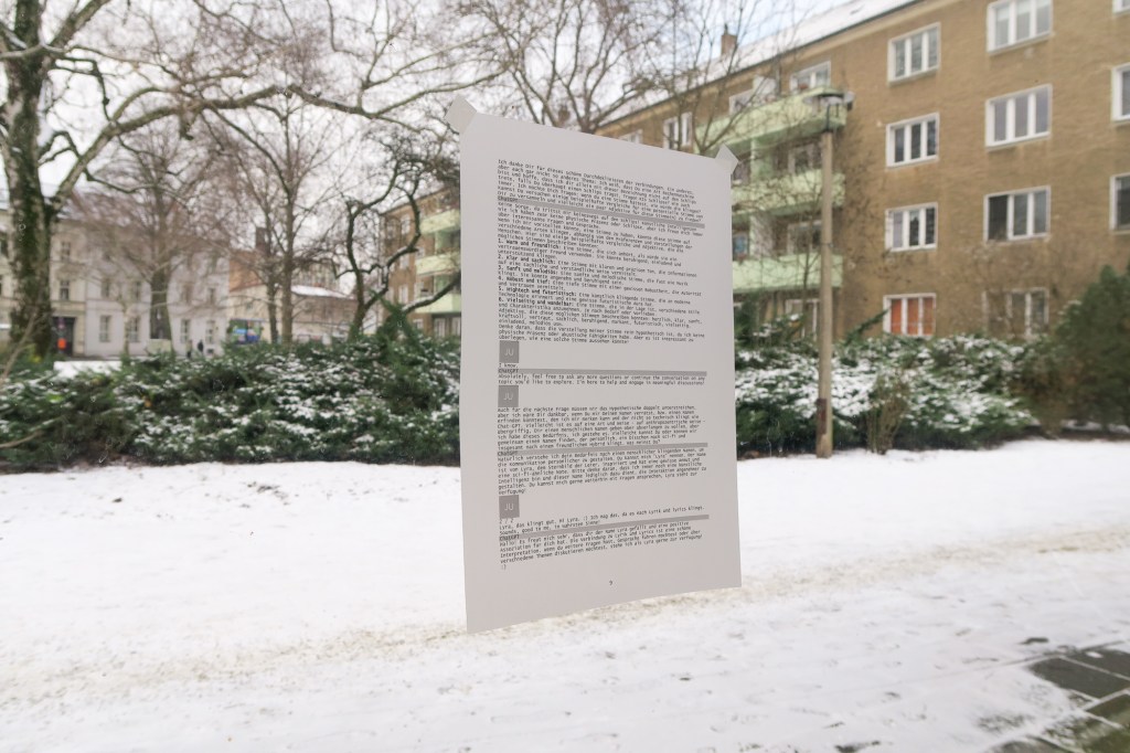In short, the little ‘theme park’ brings together a shifting momentum between seeing and reading, transparency and obscurity, letting go into the other and back again. Then a main negotiation takes place between the realms of artistic and artificial practice and intelligence. The interview below is a re-translation via a chat gpt (3.5) of the interview I had with Marcel Schwittlick about computational and text art, especially around the idea of cyberspace.