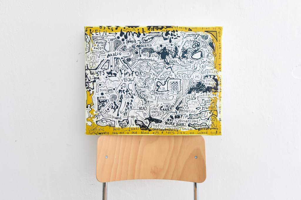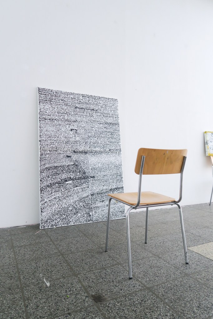 It is a bit of a retrospective as it mixes a few works from the last 3 years with current works and brings it all together as an installation for the show ‘Ich setz’ mich da auf einen Stuhl und fange dann an’ (together with Leon Titze).